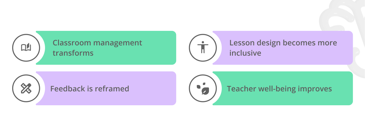 - Every brain is unique and malleable: Neuroplasticity means that with the right conditions, all students can change their neural wiring, regardless of background or previous challenges.