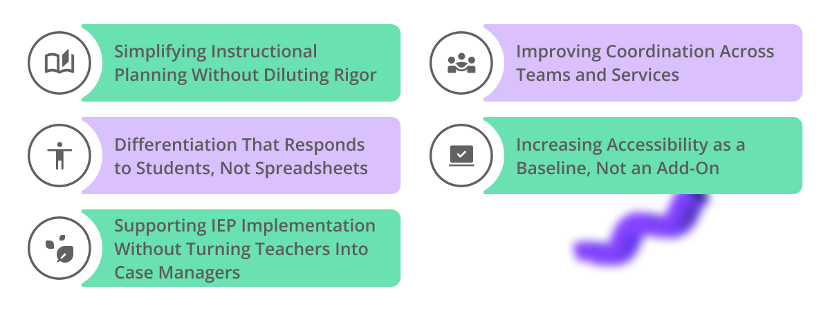 IEP implementation is not just paperwork, it’s instructional responsibility layered with legal accountability. Too often, systems track compliance without supporting practice. AI-supported EdTech can help by: